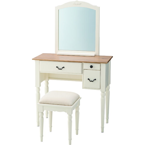 ドレッサースツールセット ドレッサー デスク テーブル 椅子付き 姫系 コスメボックス メイクボックス 収納 鏡台 化粧台 鏡付き コンパクト 大容量 かわいい おしゃれ エレガント アンティーク カントリー