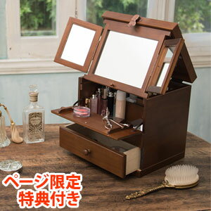 \ページ限定・ティースプーン付/ 化粧収納ボックス 【茶谷産業 コスメティックボックス 三面鏡 20-108】【送料無料・代引料無料・日本製】 コスメ収納ボックス 小型ドレッサー
