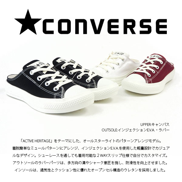 着脱イージーなミュールパターンにアレンジした、インジェクションE.V.A.のアウトソール搭載の軽量オールスター。