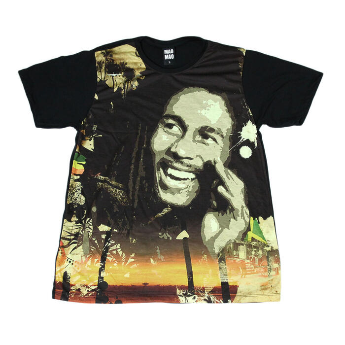 【送料無料】MAO MAO プリントTシャツ ブラック メンズ ボブマーリー レゲエ 音楽 夏フェス クラブ 自由 愛 ジャマイカ 海外 ビーチ ヤシの木 海 旅行 カワイイ おしゃれ ストリート系 カッコイイ クール インナー 柄物 半袖 M/L/XLサイズ