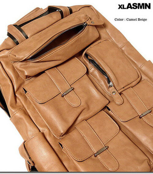 多数のベルトポケット&ジッパーポケットで収納力抜群のミリタリー系多機能ポケットリュックサック!レザー調で高級感が有り、とにかく豊富な収納で大活躍間違い無しのリュックサックです! ■多数のジップ&ベルトポケットが付いています! ■上面には持ち手ベルト付き! ■両サイドに使い易いベルトポケット! ■背中側にもジッパーポケットがあります! ■内側の収納も豊富です! ■ミリタリーテイスト満点のリュックサック!