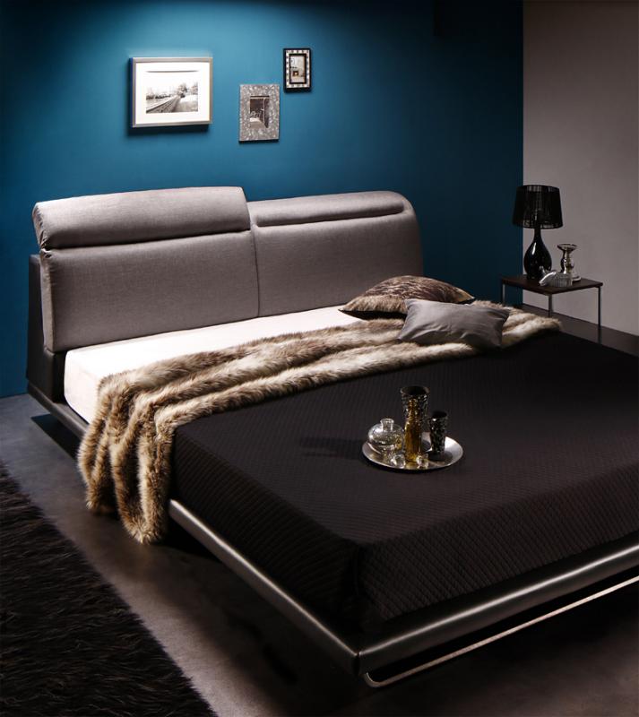 【ポイント10倍】"ローベッド クイーン【Neptuno】【国産ポケットコイルマットレス付き】ライトグレー×ブラックレザー リクライニング機能付き・モダンデザインローベッド【Neptuno】ネプトゥーノ【代引不可】"""