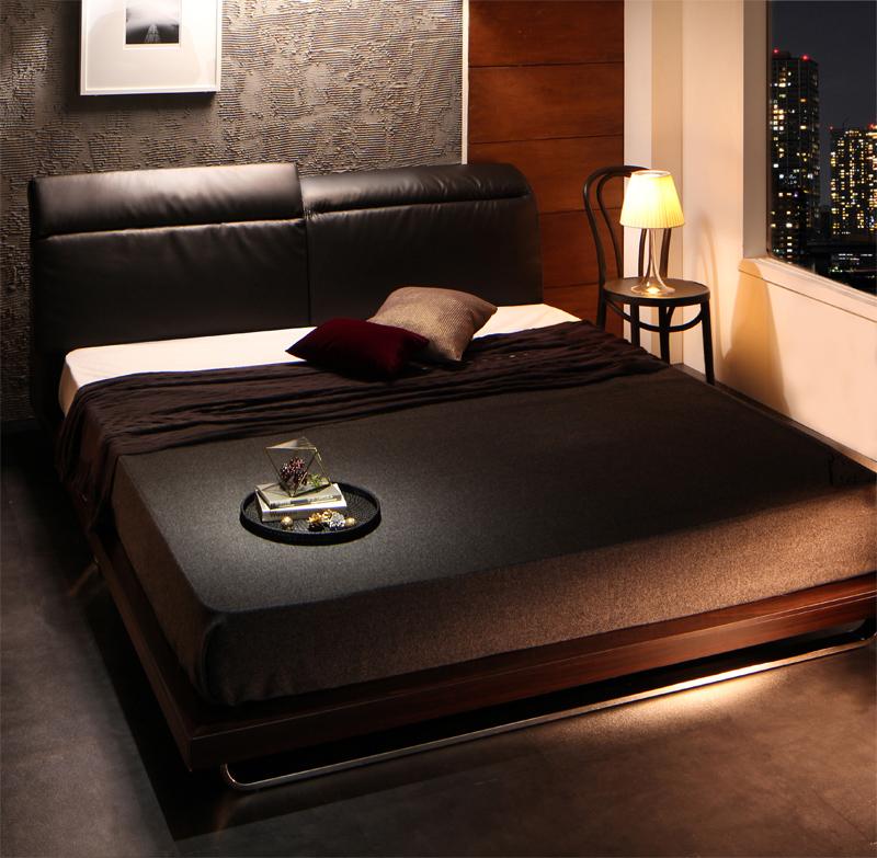 モダンデザインローベッド【Masterpiece】マスターピース【ボンネルコイルマットレス付き★幅140cm:ナローステージレイアウト】クイーン