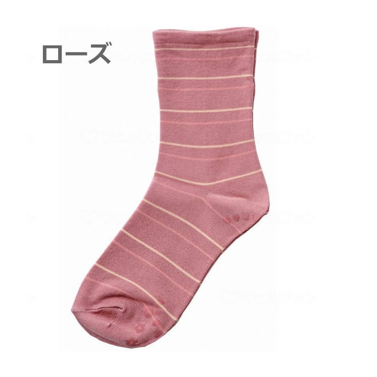 製品仕様 商品名 婦人ゴムなし柄すべり止めソックス(ボーダー) サイズ 22-24cm 素材・材質 レーヨン、ポリエステル、シルク、ポリウレタン 商品説明 足口ゆったりでおしゃれな柄ソックス。