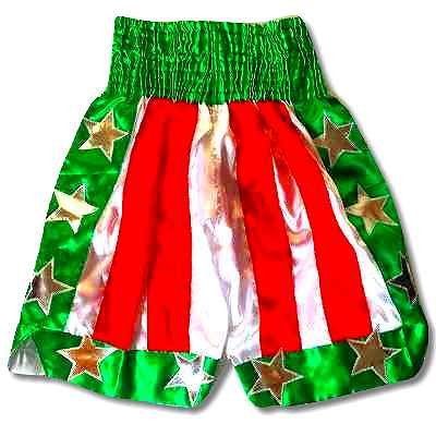 LUMPINI 102 サテン ボクシング パンツ K1緑赤白ストライプ /ムエタイ/キックボクシング/トランクス/大人用